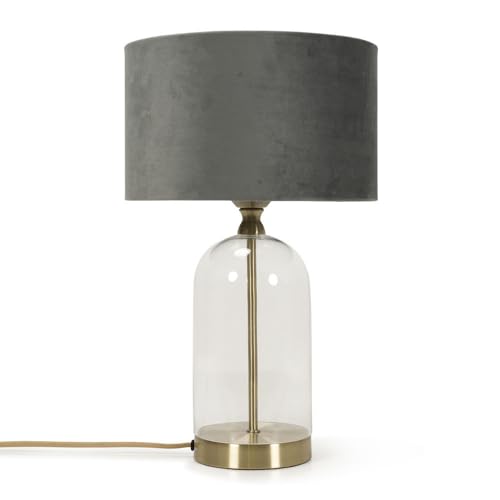 ValueLights | Glass and Gold Metal Table Lamp with a Grey Velvet Lampshade | Home Décor, Bedside & Desk Lamp