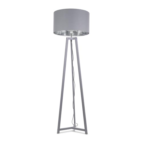 ValueLights | Grey Wood Tripod Floor Lamp with Grey/Chrome Drum Lampshade Living Room Light | Floor Lamps, Home Décor & Improvement Essential