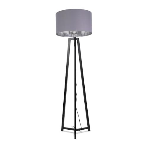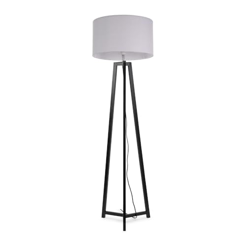 ValueLights | Black Wood Tripod Floor Lamp with Grey Fabric Drum Lampshade Living Room Light | Floor Lamps, Home Décor & Improvement Essential