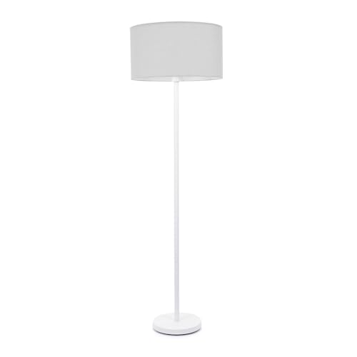 ValueLights | White Metal Single Stem Floor Lamp with Grey Fabric Drum Lampshade for Living Room Lounge | Floor Lamps, Home Décor & Improvement Essential
