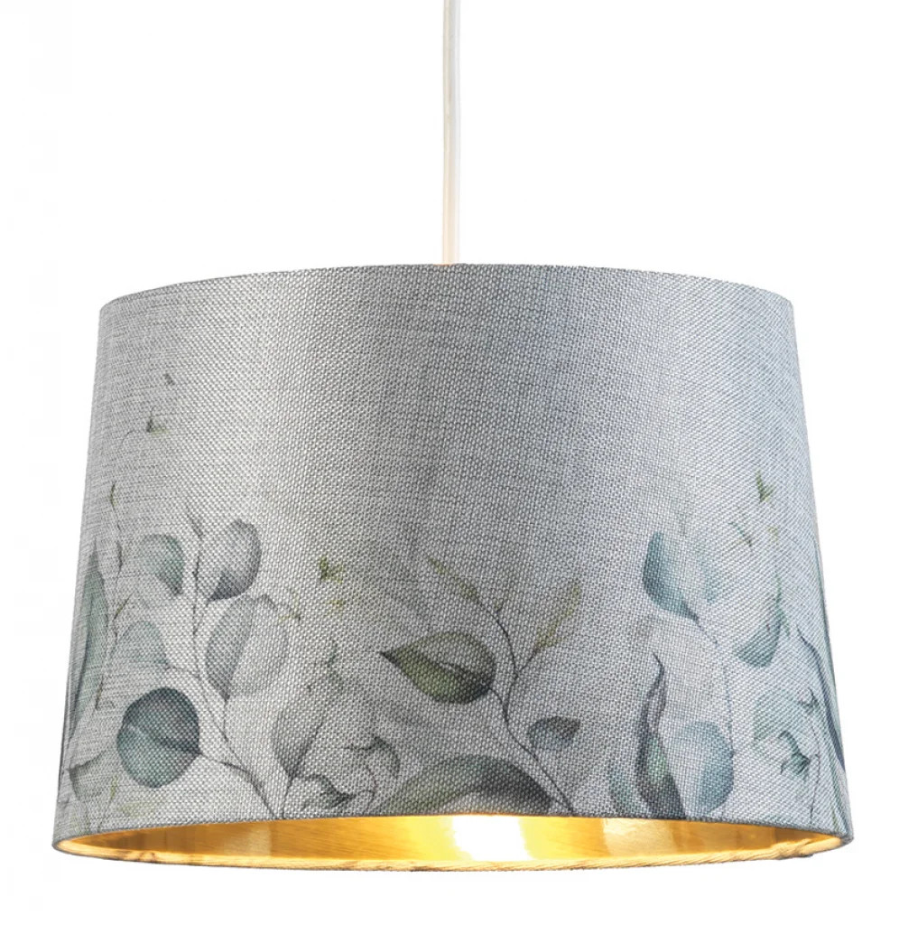 Lampshade Grey 12" Leaves Gold Inner Faux Hessian Tapered Drum 300mm Oaks