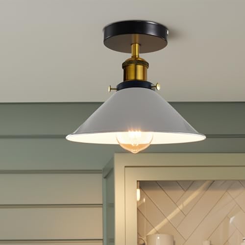 E27 Semi-Flush Mount Ceiling Lamp 22cm Grey Conical Lampshade Easy Fit Anti Rust Premium Quality Durable Metal Vintage Ceiling Lighting for Living Room, Bedroom, Dining Room, Kitchen EPC A+ Bulb
