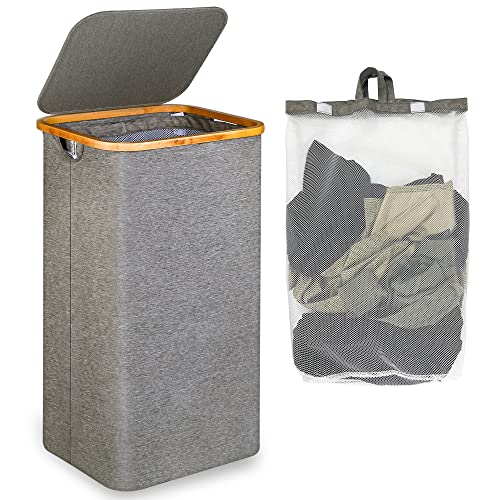 (60x40x61.5cm, Grey) Laundry Basket with Lid - Bamboo Laundry Basket, Removable Bag, Cotton Handles, for Laundry Room