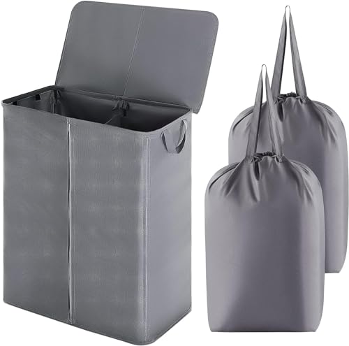 Lifewit 160L Double Laundry Basket with Lid and Removable Laundry Bags, Divided Washing Basket with Handles, Large Separated Laundry Hamper for Bedroom, Bathroom, College Dorm, Laundry Sorting, Grey