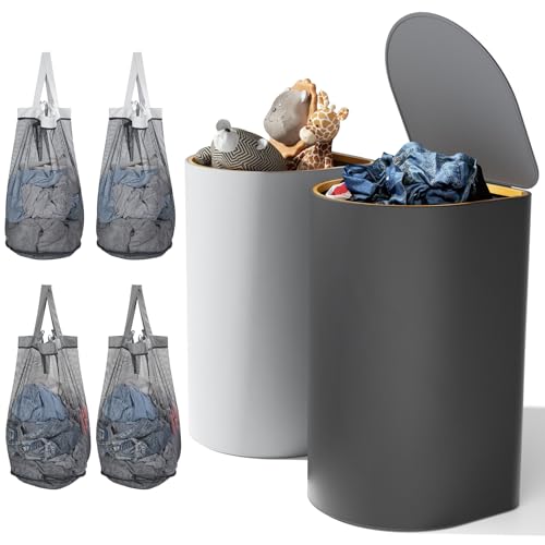 HELLKOPF 2 Laundry Baskets with Lid - 140L Laundry Bins - 4 Removable Laundry Bags - Light Grey and Dark Grey Collapsible Laundry Hamper for Bedrooms, Laundry
