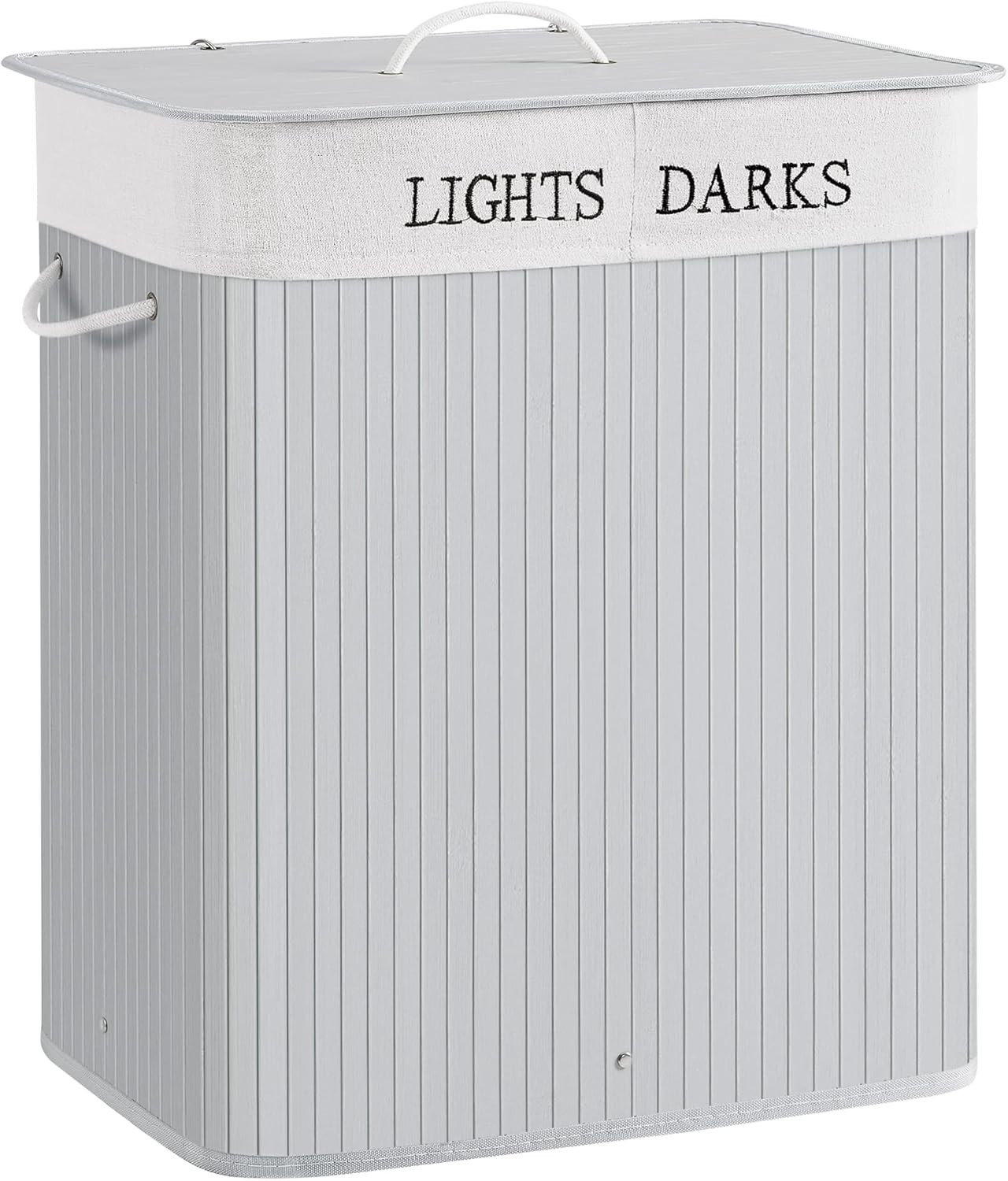 SONGMICS Laundry Hamper with Lid, Bamboo Laundry Basket, Removable Machine Washable Hamper Basket, with Handles, 150 L, for Laundry Room, Bedroom, Washroom, Dove Grey LCB062G01