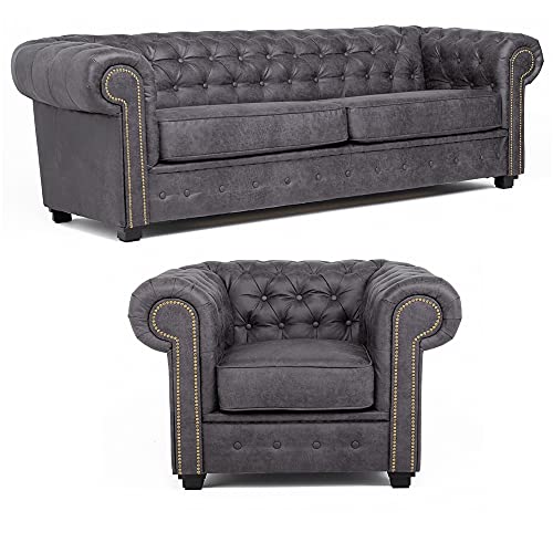 Grey leather sofas