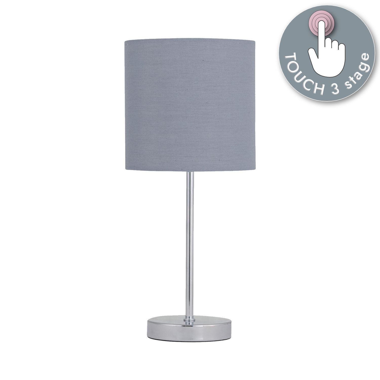 Modern Chrome Touch Operated Table Lamp Bedside Light Grey Cotton Shade
