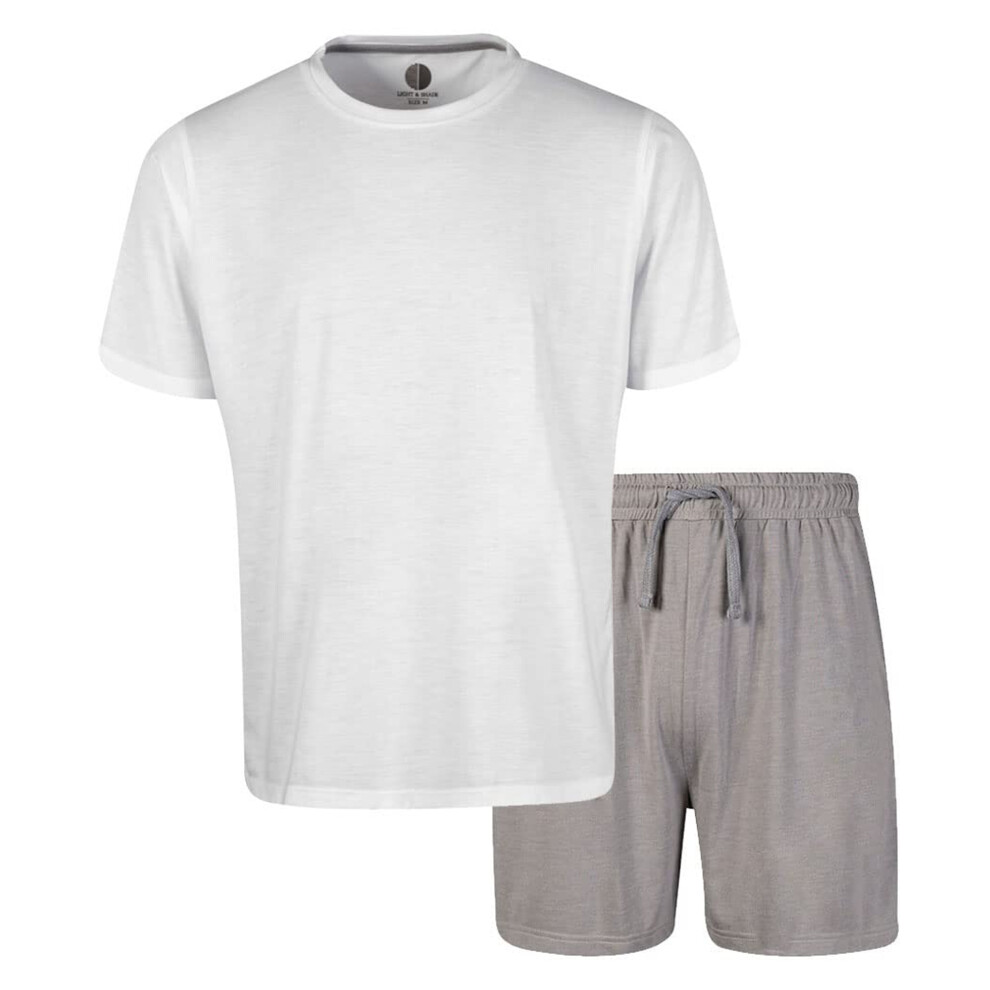 (M, White/Light Grey) Light And Shade Mens Crew Neck Short Pyjama Set