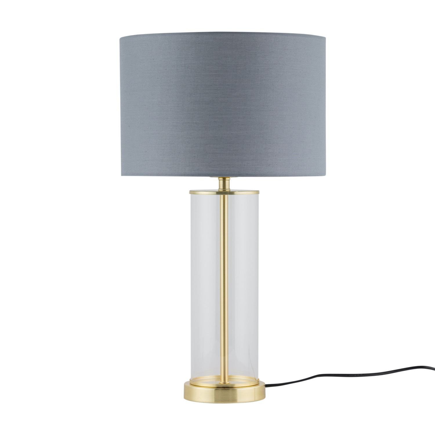 Modern Satin Brass & Glass Table Lamp Bedside Light Grey Cotton Shade