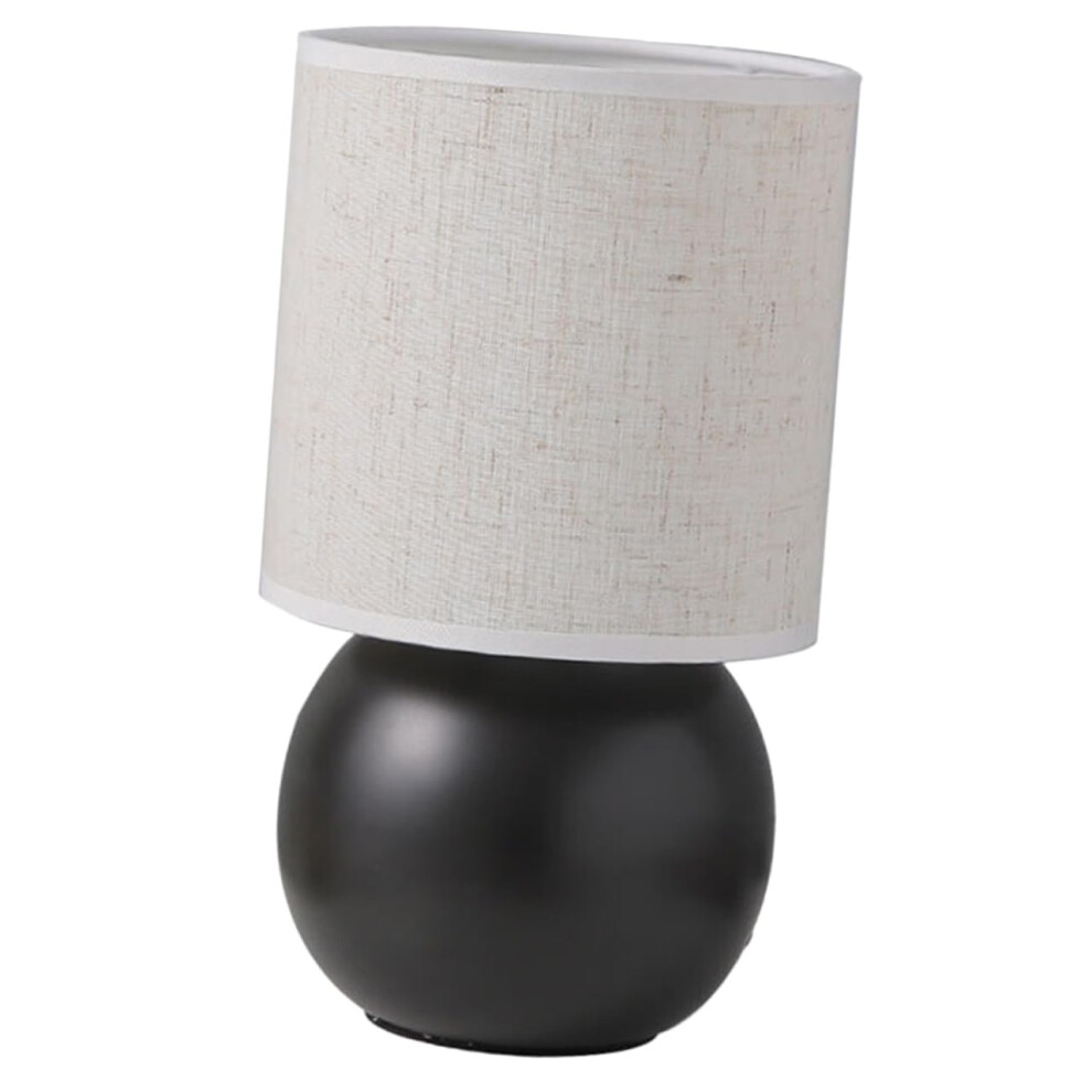Vintage Ceramic Table Lamp With USB Port Warm Light Grey Linen Shade Matte Black Base Bedside Desk Light