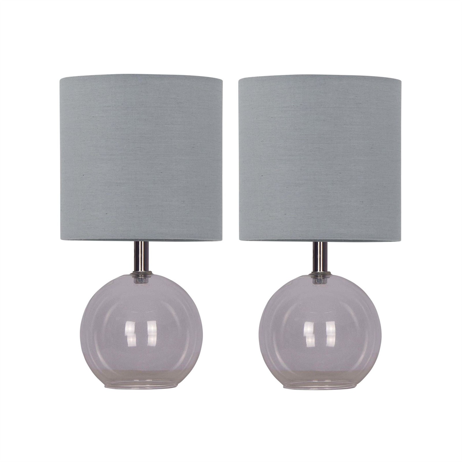 Modern Clear Glass Globe Operated Table Lamp Bedside Light Grey Cotton Shade