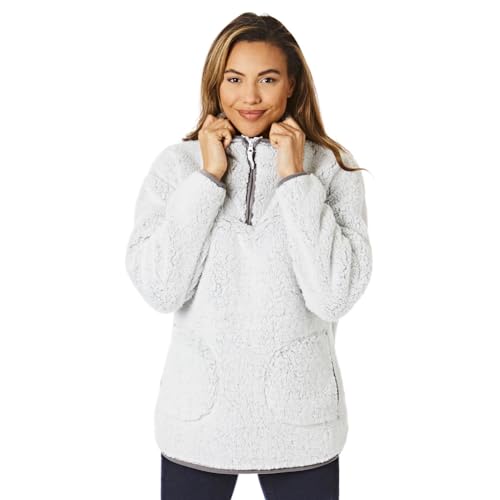 Light & Shade Ladies Borg Supersoft Pullover Lounge Bed Jacket Snuggle Top, Grey, L/XL