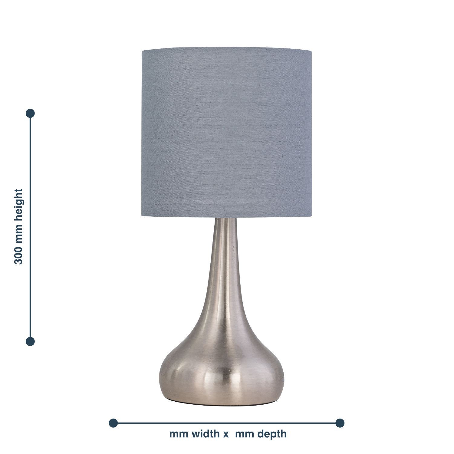 Modern Brushed Chrome Touch Operated Bedside Lamp Table Light Grey Cotton Shade