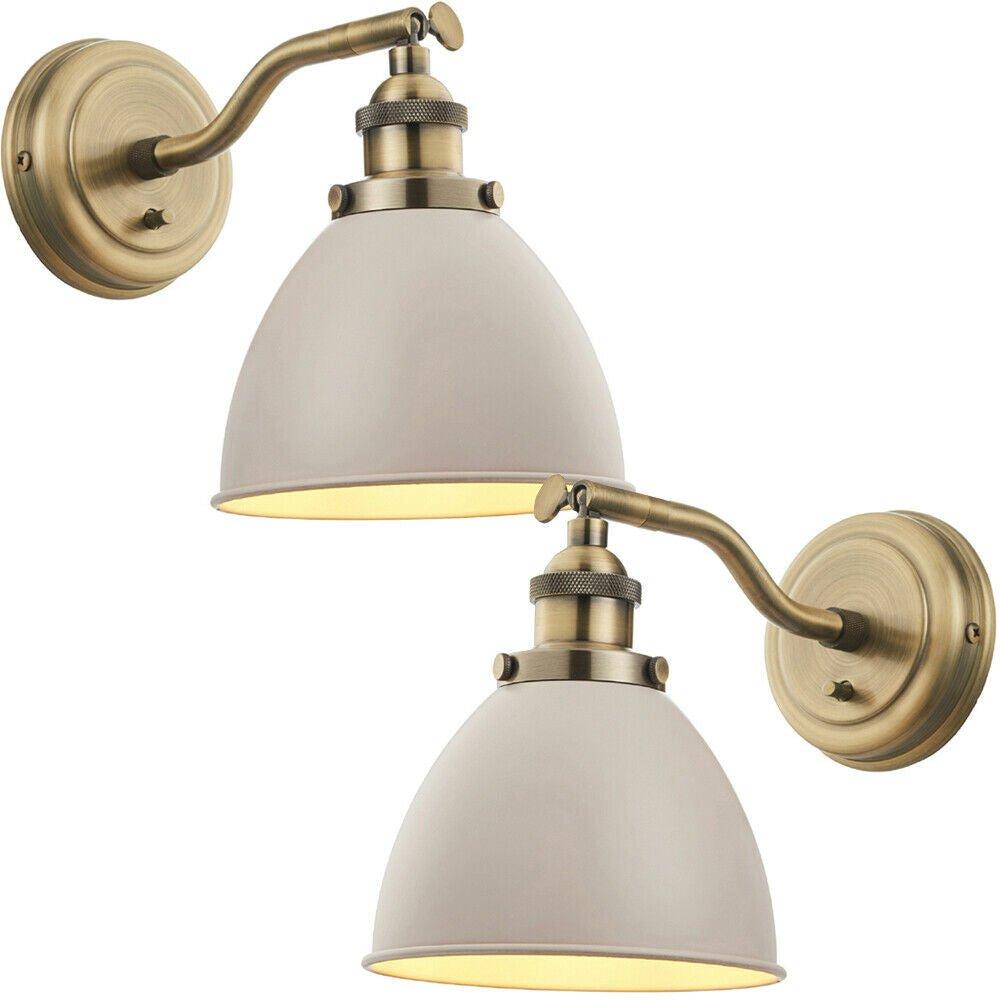 2 PACK Adjustable Industrial Wall Light Brass & Grey Shade Vintage Arm Lamp