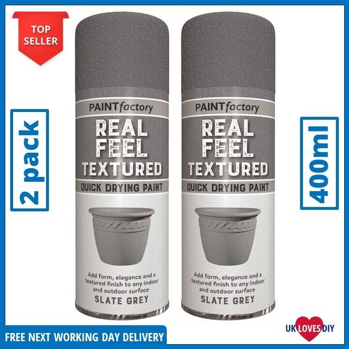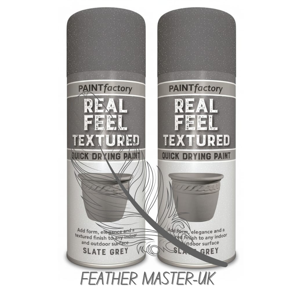 2x 400ml Real Feel Textured Slate Grey Spray Premium Paint Metal, Wood, Plastic