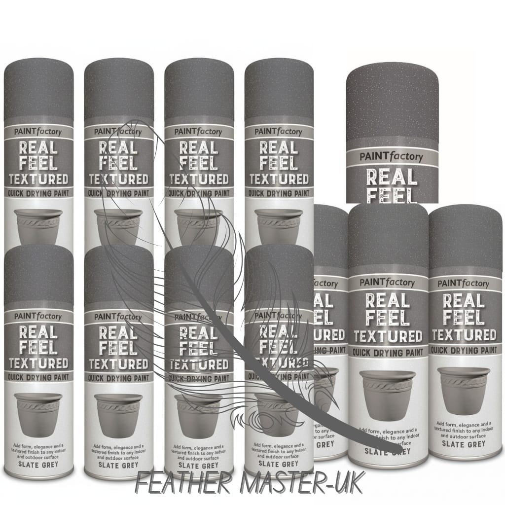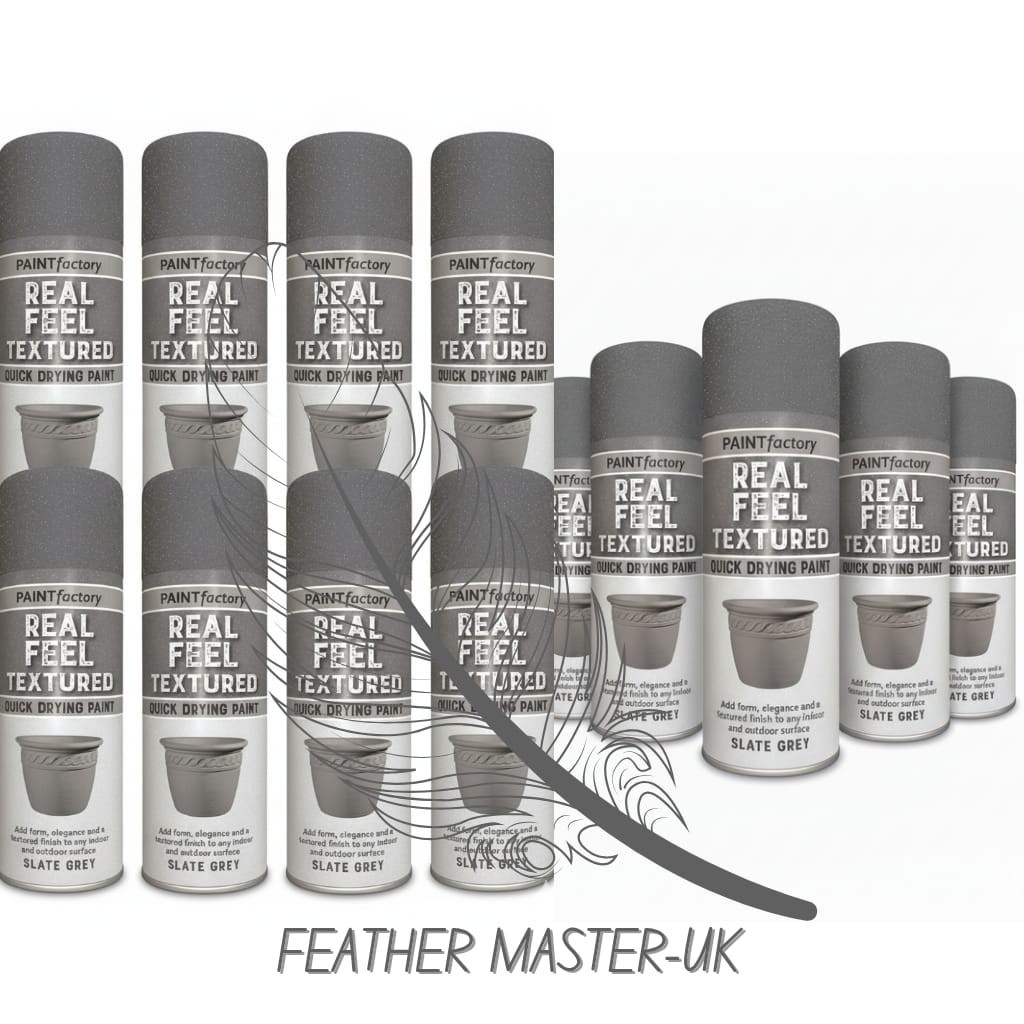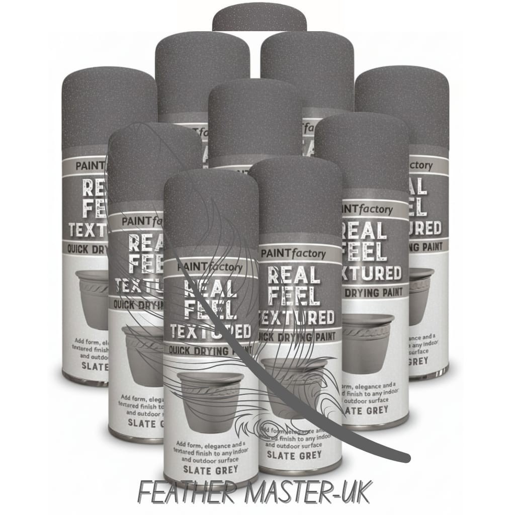 10x 400ml Real Feel Textured Slate Grey Spray Premium Paint Metal, Wood, Plastic