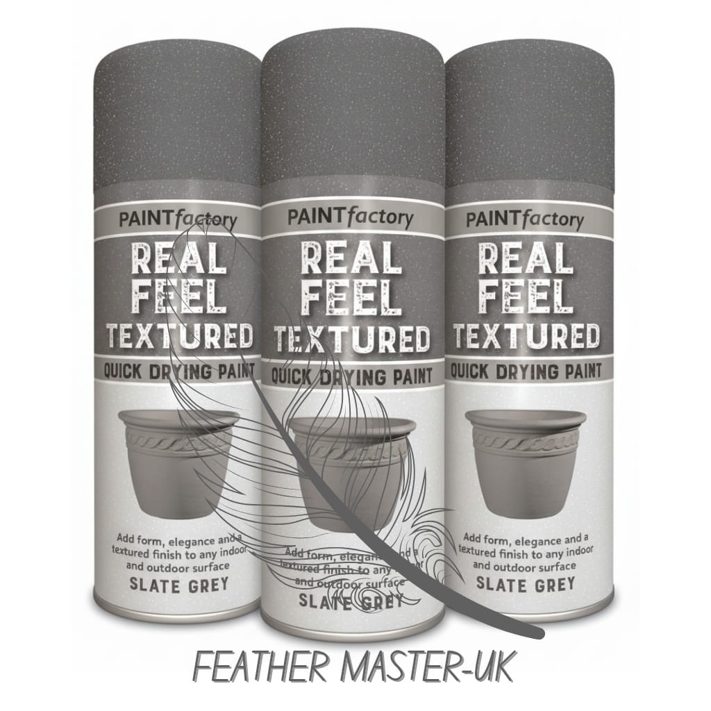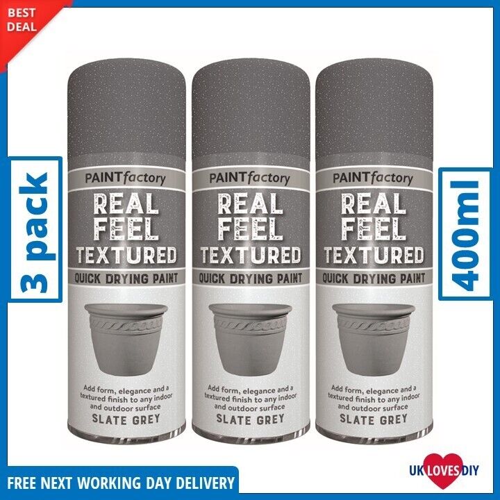 3x 400ml Real Feel Textured Slate Grey Spray Premium Paint Metal, Wood, Plastic