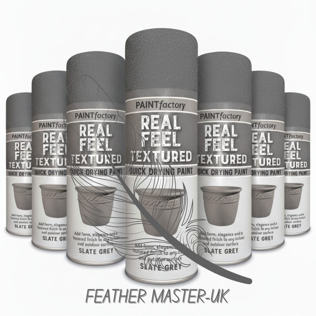7x 400ml Real Feel Textured Slate Grey Spray Premium Paint Metal, Wood, Plastic