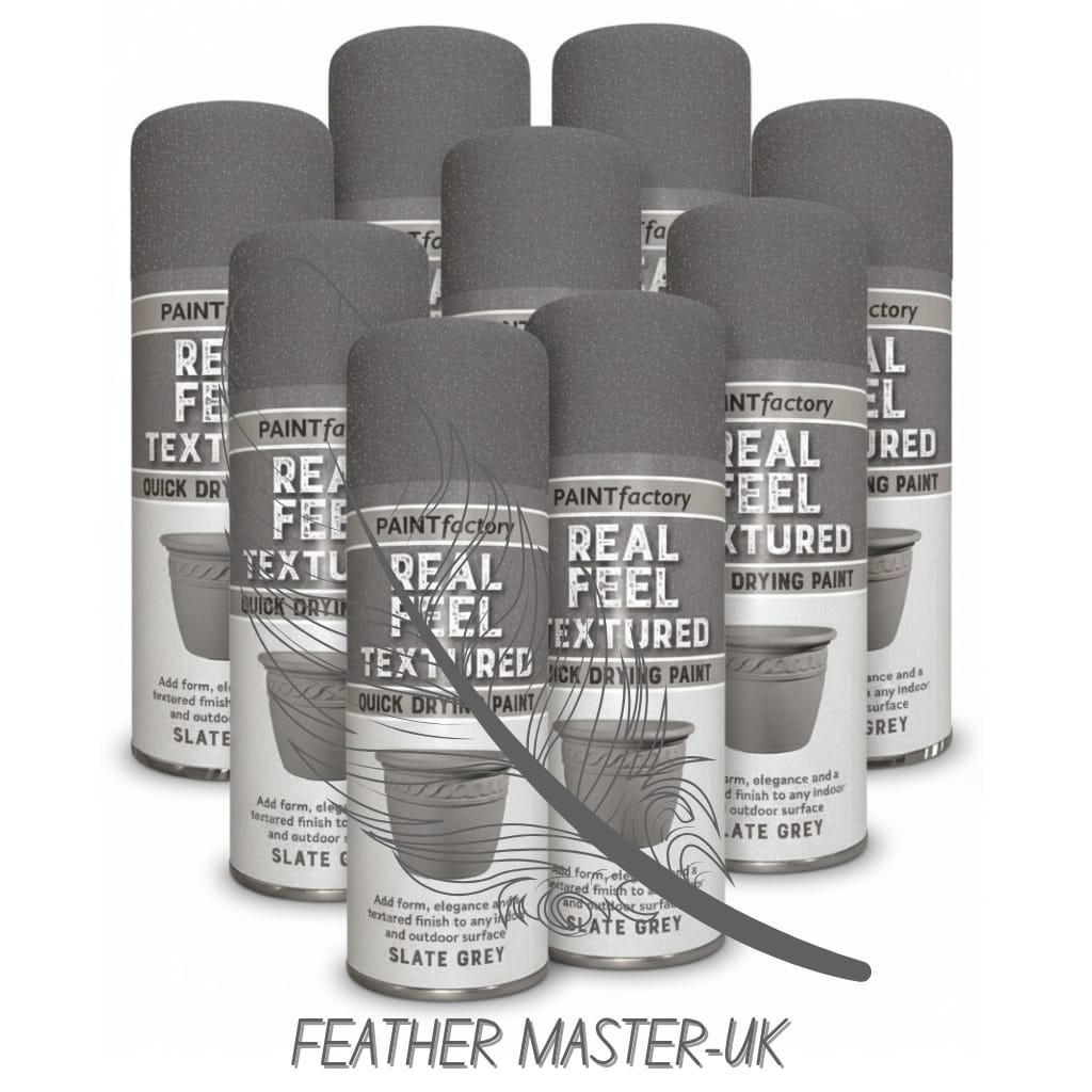 9x 400ml Real Feel Textured Slate Grey Spray Premium Paint Metal, Wood, Plastic