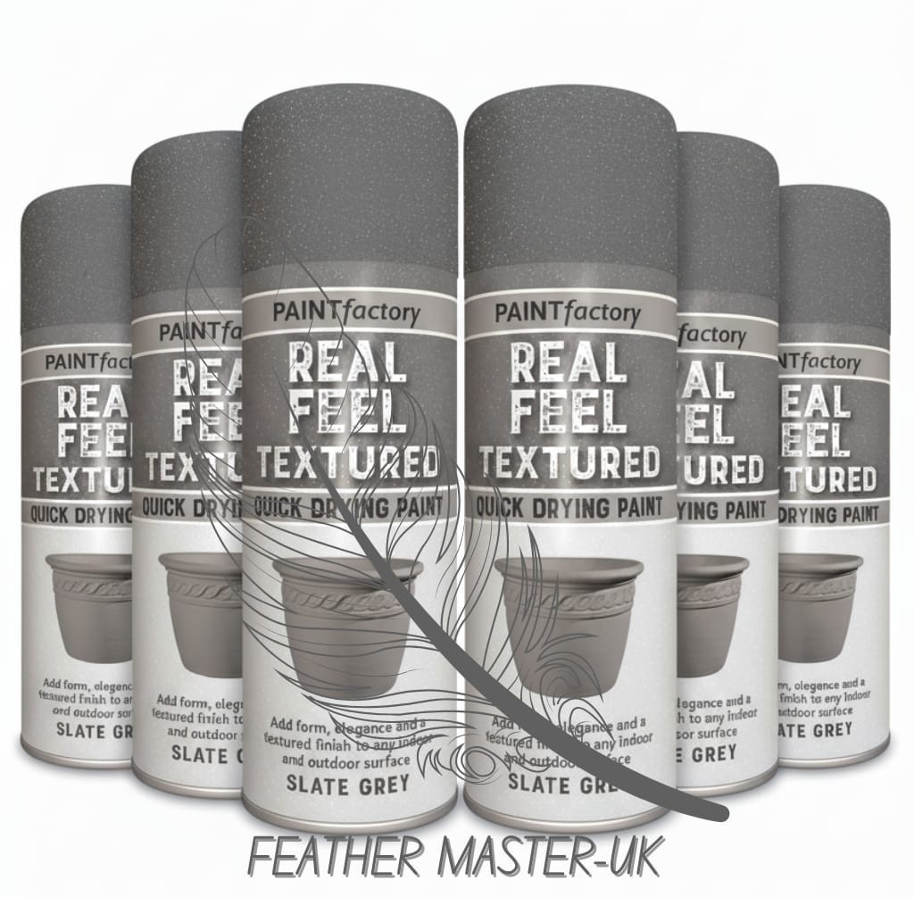 6x 400ml Real Feel Textured Slate Grey Spray Premium Paint Metal, Wood, Plastic