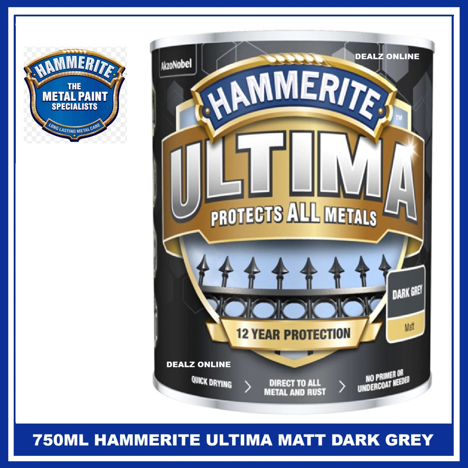 Hammerite Ultima MATT DARK GREY 750ML Metal Paint + FREE BRUSH