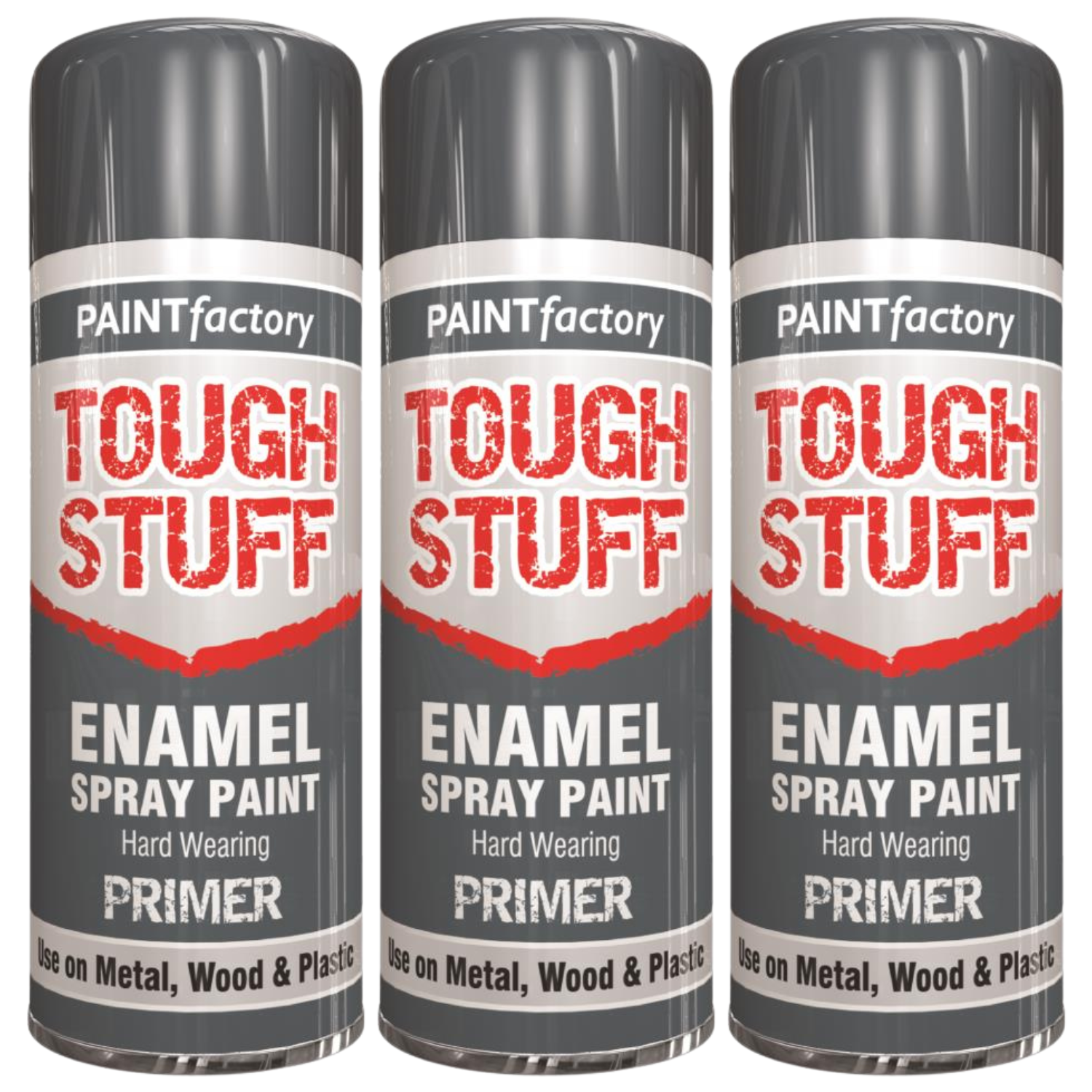 Paint Factory Tough Stuff Enamel Grey Primer Spray Paint for Wood Metal 400ml X3