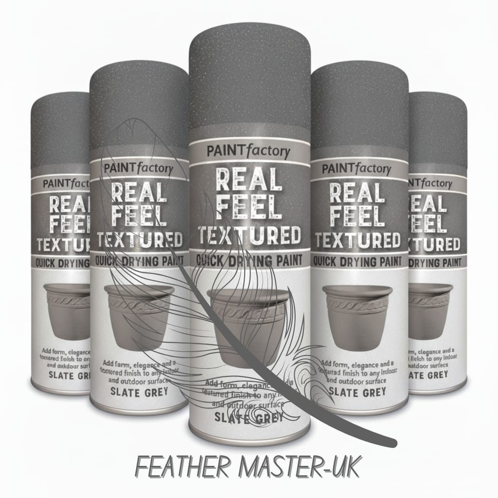 5x 400ml Real Feel Textured Slate Grey Spray Premium Paint Metal, Wood, Plastic