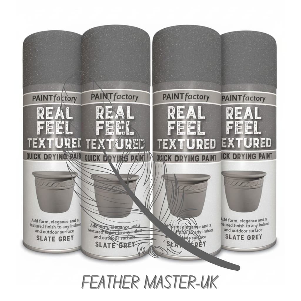 4x 400ml Real Feel Textured Slate Grey Spray Premium Paint Metal, Wood, Plastic