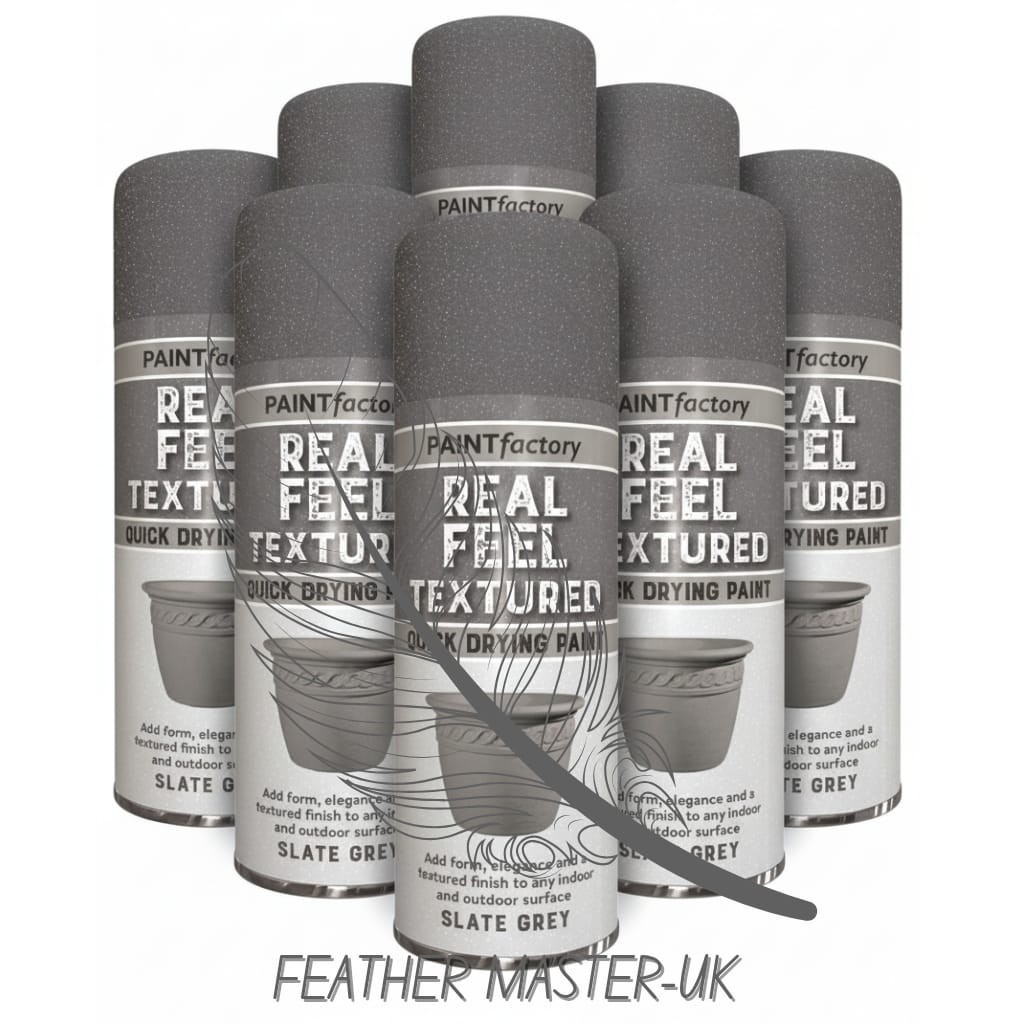 8x 400ml Real Feel Textured Slate Grey Spray Premium Paint Metal, Wood, Plastic