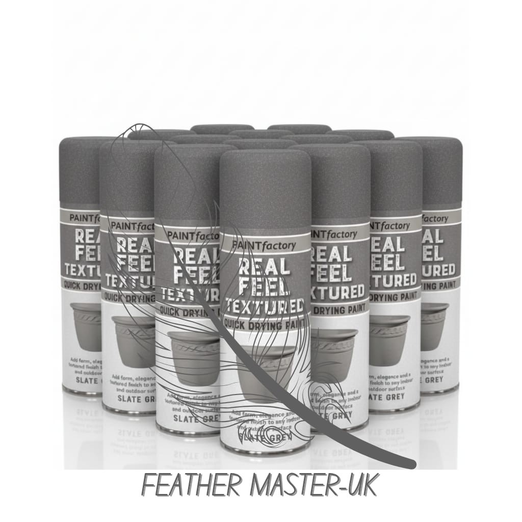 12x 400ml Real Feel Textured Slate Grey Spray Premium Paint Metal, Wood, Plastic