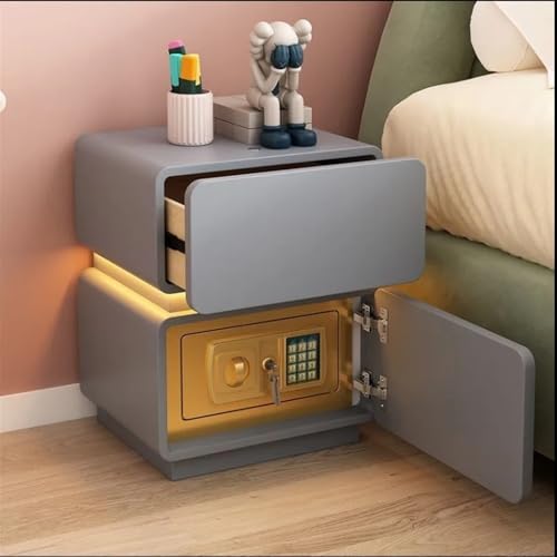 Huangj-0527 Bedside Cabinet Nightstand Nightstand with Safe LED Bedside Table for Bedroom Modern Night Stand End Side Table for Bedroom Bedside Table(Light grey)