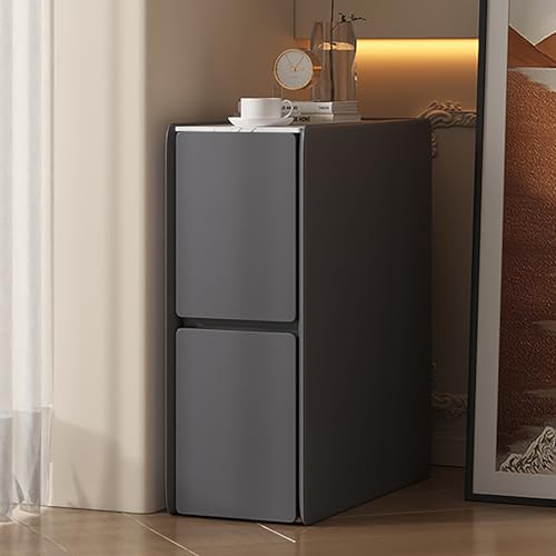 LMXRYPD Night Stand, Office Side Table, End Tables Living Room, Narrow Tables for Bed, Nightstand with 2 Drawers, for Small Spaces(Grey,40cm/15.7in)