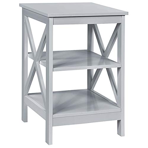 Multigot Wooden Side Table, X-Frame Storage End Table with Open Shelf, Night Stand Bedside Table for Living Room Bedroom Study (3 Tiers, Grey)