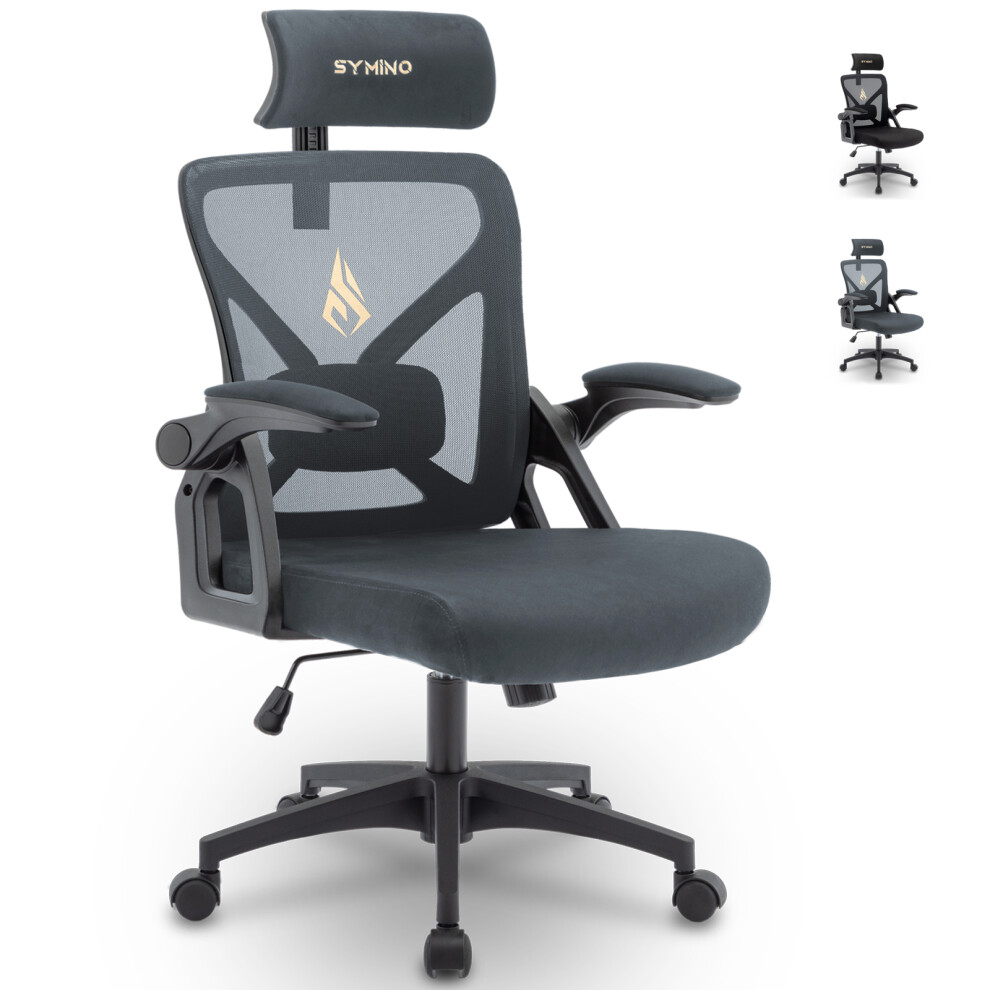 (Dark Grey) Mesh Office Chair Flip-Up Armrest Ergonomic Seat
