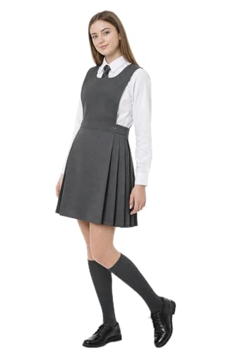 INSAFIANS Girls School Pinafore Dress Pleated 2 Button Kids School Dress School Uniform (Grey, 15-16 Years)