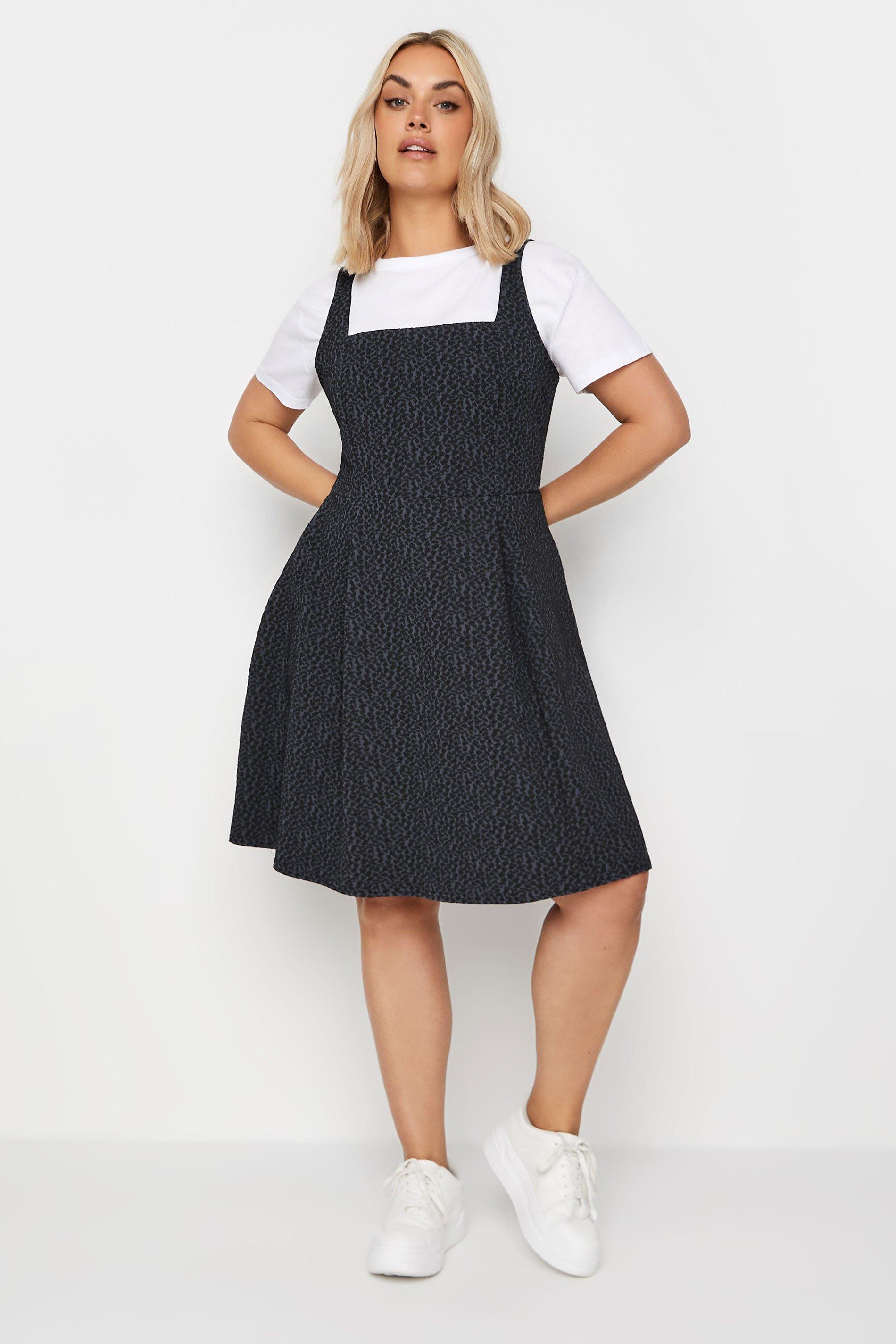 YOURS Curve Grey Check Print Button Through Pinafore Dress