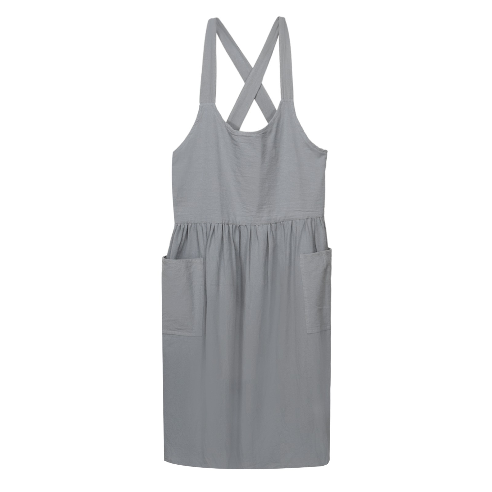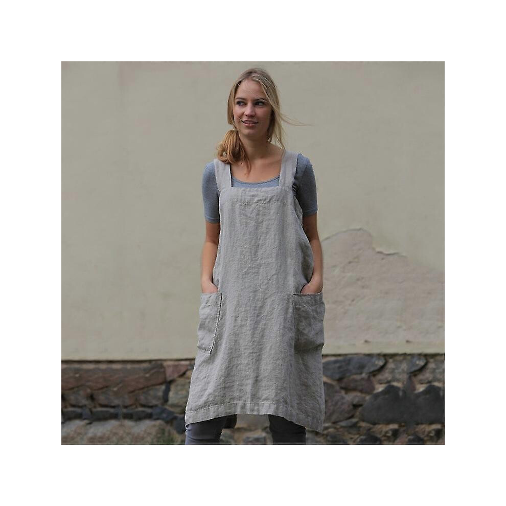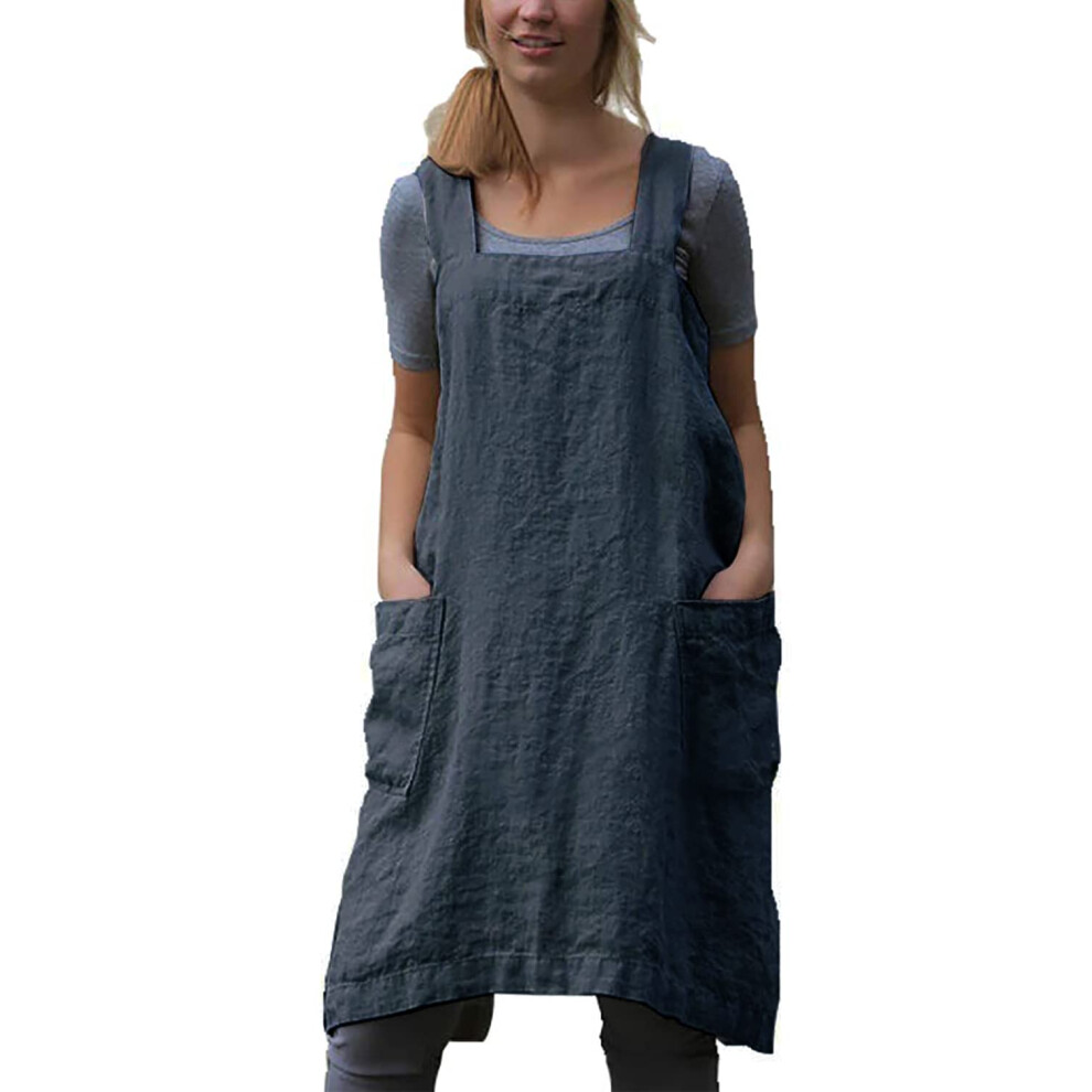 Women's Pinafore Apron Cross Back With Pockets Plus Size XL Dark Grey Cotton Linen Cooking Apron Dress