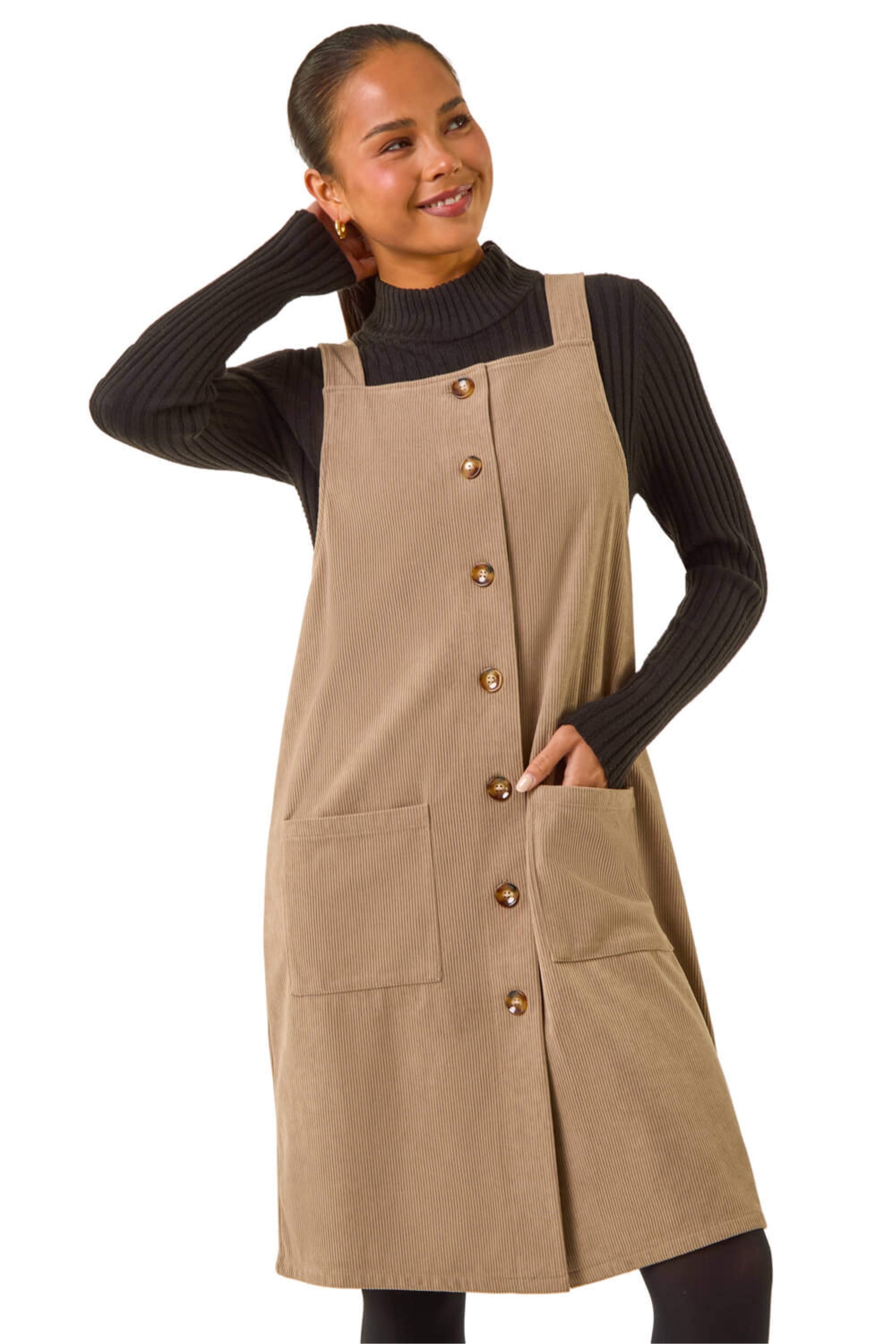 Roman Womens Petite Corduroy Pinafore Dress - Stone - Size 16 UK