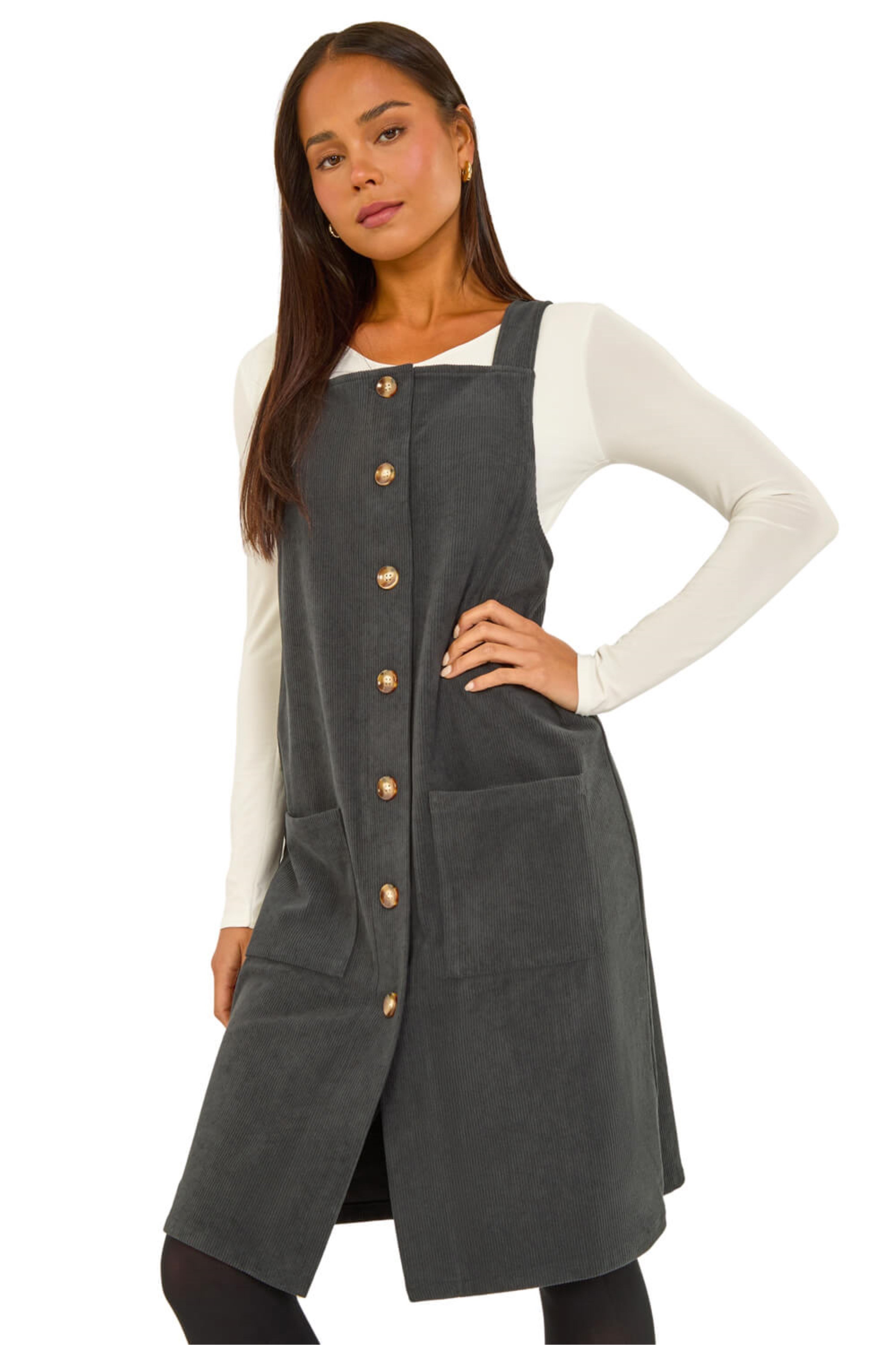 Roman Womens Petite Corduroy Pinafore Dress - Grey - Size 12 UK