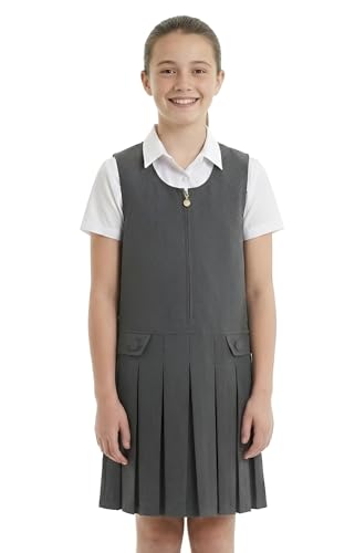 Trutex Traditional Pleated School Pinafore Dress for Girls (3-12 Years), School Dresses for Girls with Front Zip, Girls Pinafore Dress School Uniform - Genuine School Uniform Grey