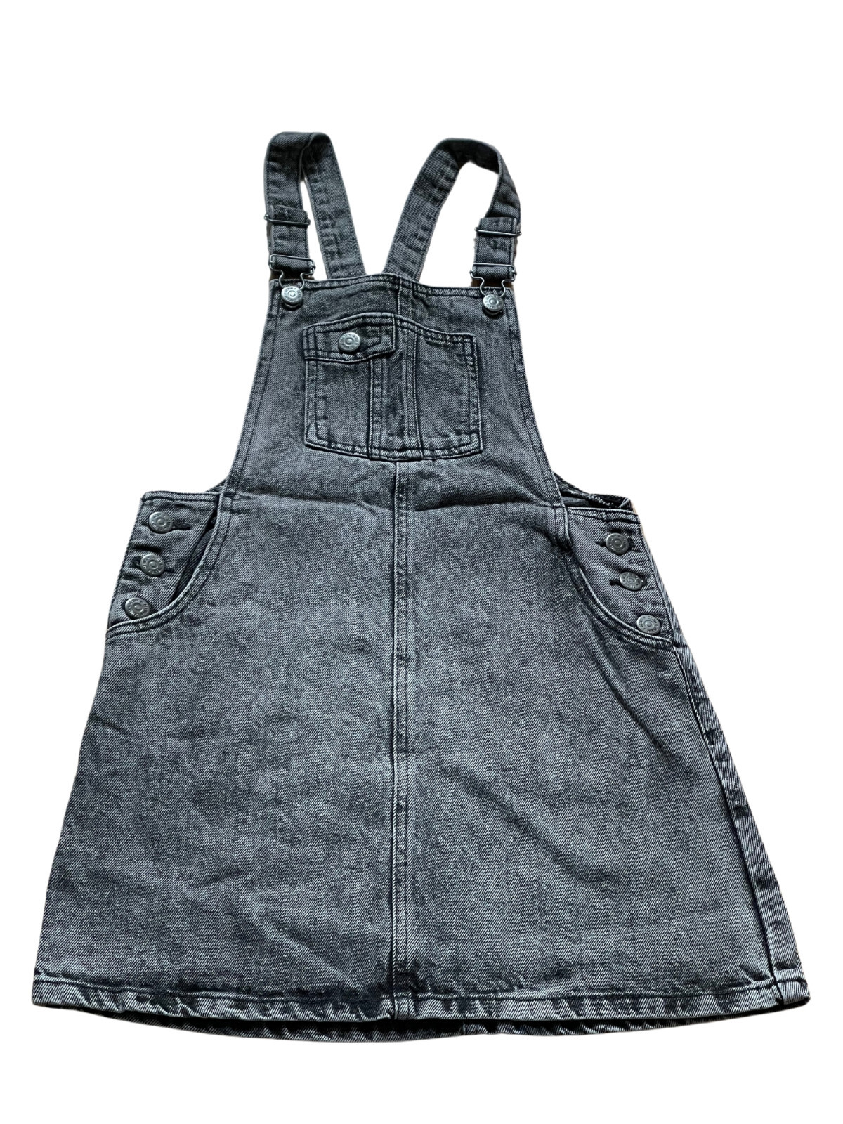 Girls Dark Grey Wash Denim Dungaree Adjustable Shoulder Straps Pinafore Dress