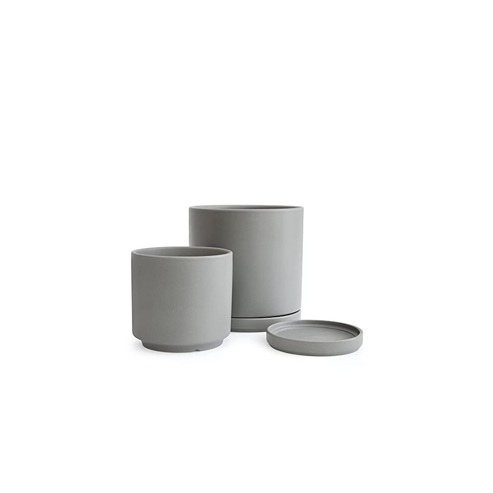 Large Plant Pots Set, 8 Inch & 10 Inch Ceramic Planter Pot for Plants with Drainage Hole and Saucer, Grey, 94-G-L-3