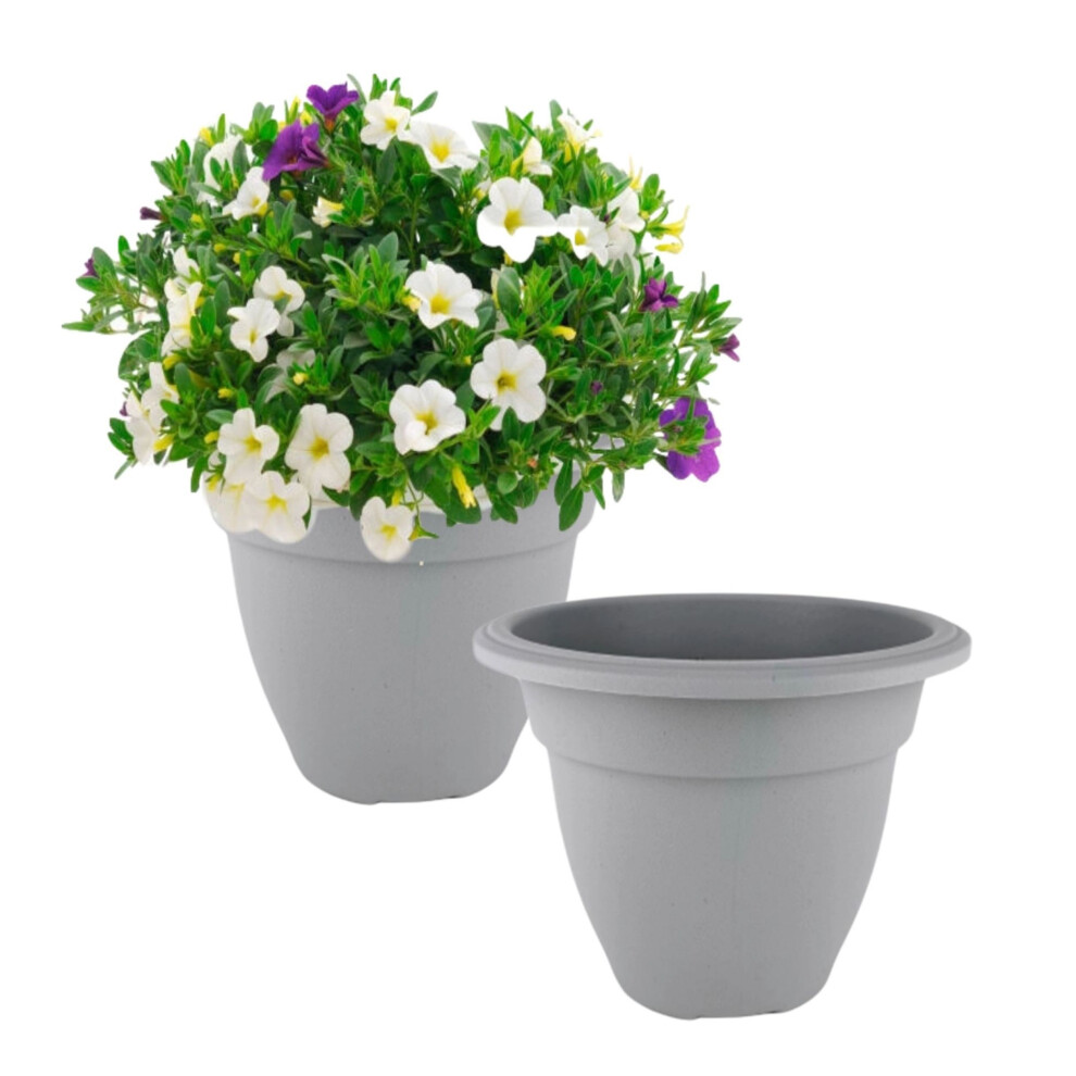 2 Grey Round Bell Plant Pots 30cm Plastic Bell Planter Patio Pot