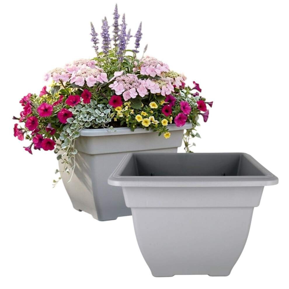 2 Grey Square Bell Plant Pots 38cm Plastic Pot