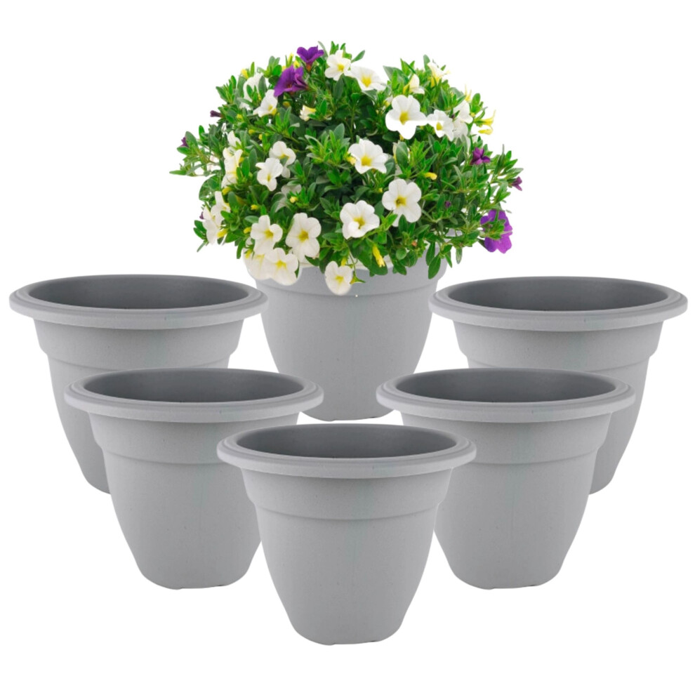 Gray 6-Inch Plant Pots with Drainage & Saucers 12 Pack, Indoor & Outdoor Planters for Houseplants, Herbs, and Flowers, Durable & Weatherproof Material