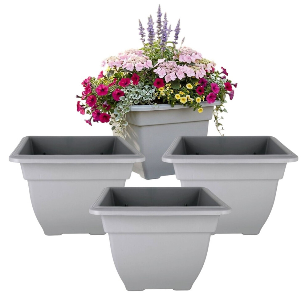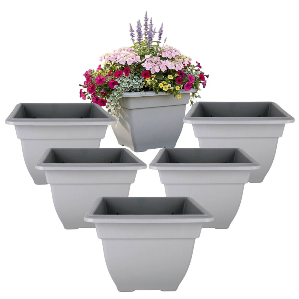 6 Grey Square Bell Plant Pots 38cm Plastic Pot