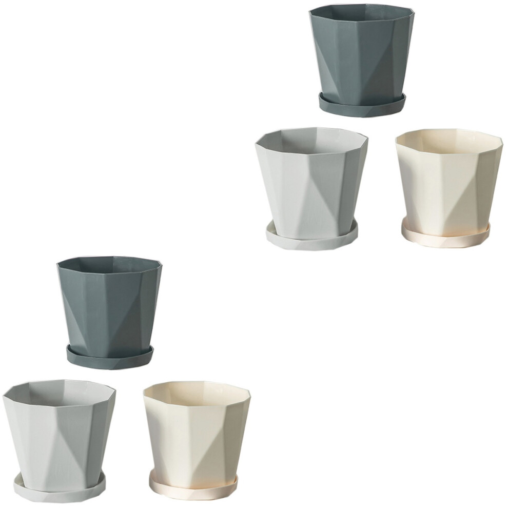 6Sets White Grey Plastic Plant Pots with Removable Tray for Home Use