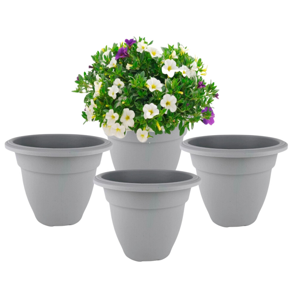 4 Grey Round Bell Plant Pots 30cm Plastic Bell Planter Patio Pot