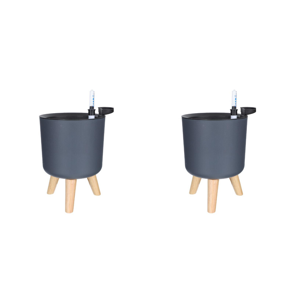 2Pcs Modern Grey Self Watering Plant Pots with Stand for Indoor Garden